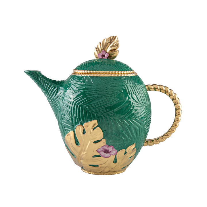 A tribute to the flourishing tropical nature of this well-known Mexican location, the ACAPULCO collection sets the table with teapots, dallahs, large and smaller cups, plates, saucers and dessert stands full of exotic charm. Made in porcelain painted by hand in an intense emerald green hue with details in 24 carat gold, the tea set display naturalistic relief motifs that reference banana leaves and flowers, enhancing all the products. With its bright colors and impeccably detailed botanical patterns, Acapulco has been created to amaze guests with its captivating design.