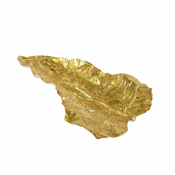 Upgrade your table display with this Villari leaf ornament, Italian-crafted in the finest porcelain and hand painted with 24 ct gold. Fabulous for serving nuts, chocolate, dates and treats, this leaf is certain to wow guests especially if you pair with other leaves available in different colours, sizes and shapes, to create a striking focal point.
