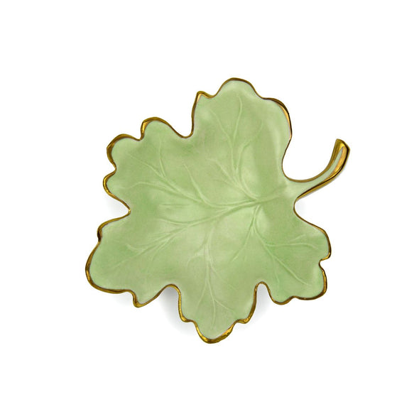 Bring an element of nature into your home with this intricately designed fig leaf. Skilfully crafted from porcelain and painted, along with 24 ct gold detail, this acid green piece will add charm to any décor. Fabulous for serving nuts, chocolate, dates and treats, this leaf is certain to wow guests especially if you pair with other leaves available in different colors, sizes and shapes to coordinate the look.