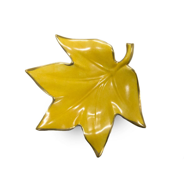 Bring an element of nature into your home with this intricately designed marple leaf. Skilfully crafted from porcelain and painted, along with 24 ct gold detail, this yellow piece will add charm to any décor. Fabulous for serving nuts, chocolate, dates and treats, this leaf is certain to wow guests especially if you pair with other leaves available in different colors, sizes and shapes to coordinate the look.