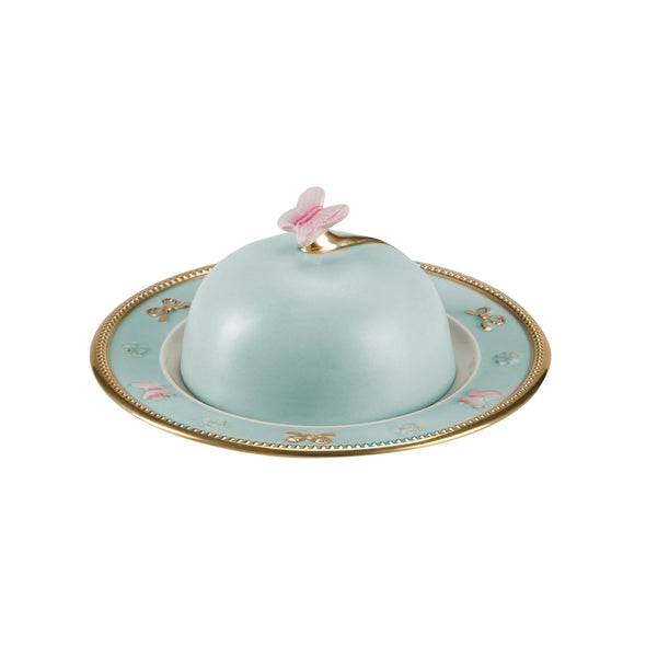 Serve butter stylishly from this pretty butterfly butter dish with cloche from Villari. Inspired by the poetic dance of butterflies in spring, this delightful butter dish has been luxuriously hand made in Italy and hand painted in a delicate pastel hue with 24 ct gold detailing. Perfect for complementing an elegant, sophisticated breakfast, this butterfly butter dish will make a charming addition to your dinnerware collection.