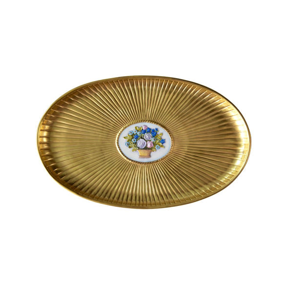 Introduce an element of culture to your interior with the Caravaggio collection, a tribute to the great artist's dramatic style. This Caravaggio vanity tray made from porcelain, adorned with a high relief textured flower motif, hand painted in vivacious colours and 24 ct gold, will add instant chic to your dressing table to display your beauty essentials. Coordinate with matching accessories to complete the look