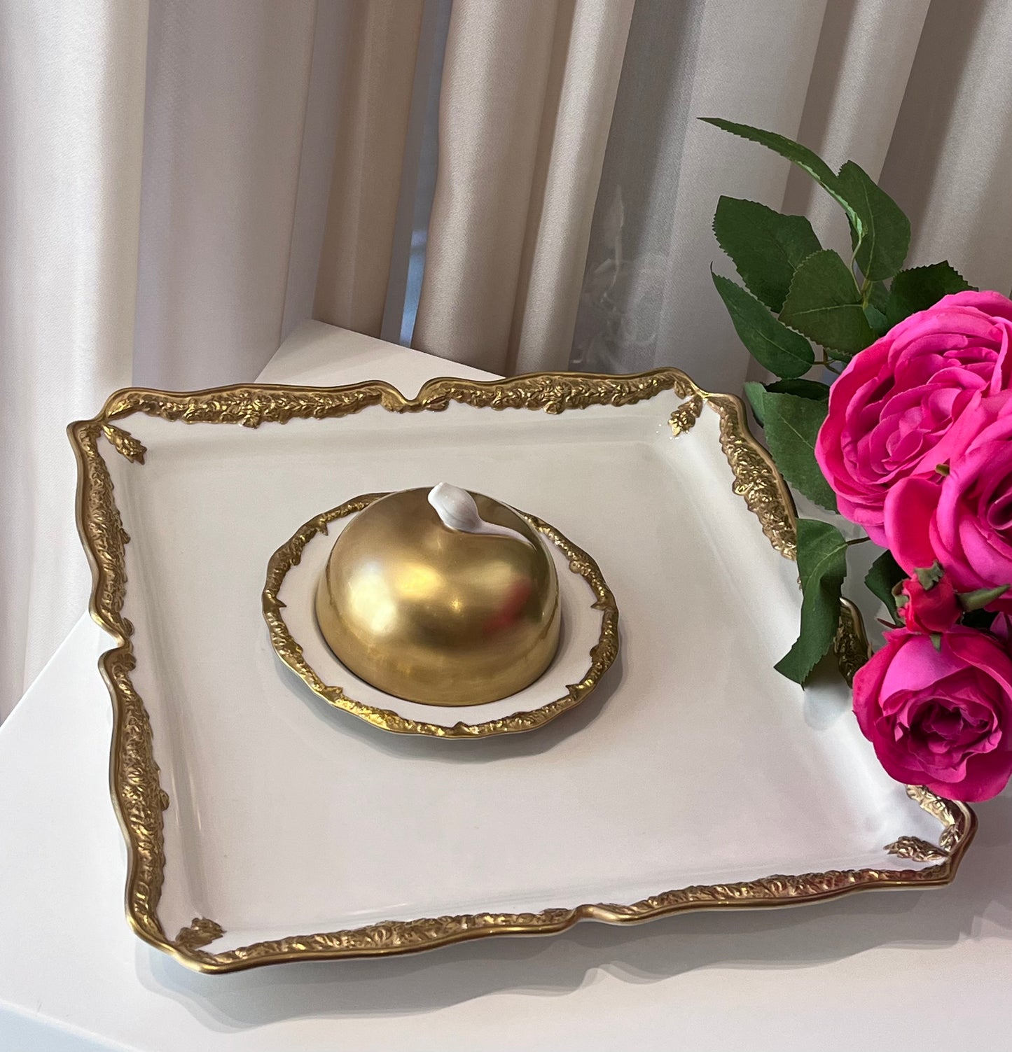 Serve guests in luxury with these Empire oval dish from Villari. Inspired by the Empire Style (19th C.) Adorned with festoons, crafted by skilled artisans in Italy from porcelain and hand painted with 24ct gold details, this oval dish can be coordinated with additional pieces available separately from the Empire collection to complete the look.