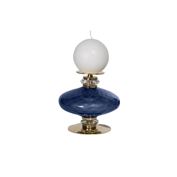 Boasting the presence of a diva comes this Diva Audrey candle holder from Villari.The Divas Collection pays homage to the Hollywood stars of the '40s and this superb candle holder is dedicated to the unique personality of Audrey Hepburn. It is a feminine and sophisticated piece, creating an eye-catching effect in both a classic and contemporary interior. Hand crafted from 24 ct gold plated brass and porcelain, the pebble shaped feature has a subtle embossed pattern, painted in a striking blue hue, subtley embellished with gold and a sparkling crystal ring accent. This sophisticated diva will shine brightly wherever you place it in the home.