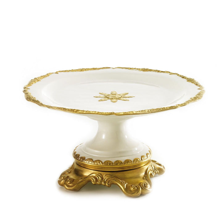 Serve guests in luxury with this Empire Cake Stand from Villari. Inspired by the Empire Style (19th C.), adorned with festoons, crafted by skilled artisans in Italy from porcelain and hand painted with 24ct gold details, this cake stand can be coordinated with additional pieces from the Empire collection to complete the look.