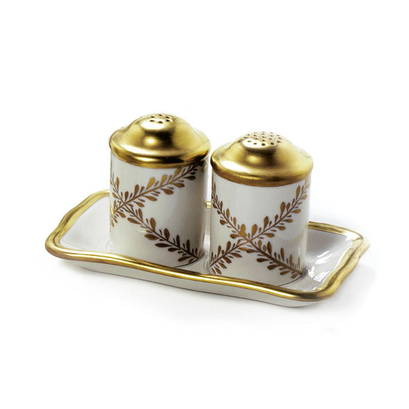 Add eternal elegance to your kitchen with this Empire salt & pepper shaker set from Villari. Expertly handcrafted from porcelain in Italy and decoratively finished in 24 ct gold, they'll add some timeless style to any meal.
