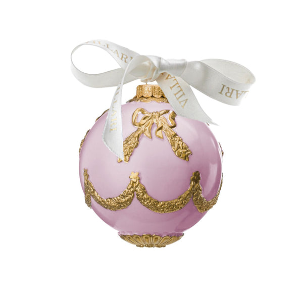 Add a festive finishing touch to your tree with this hanging decoration from Villari. Expertly handcrafted from porcelain, this Christmas bauble is hand painted in a delicate a pastel pink hue with 24ct gold detailing and adorned with the brand’s iconic festoons.