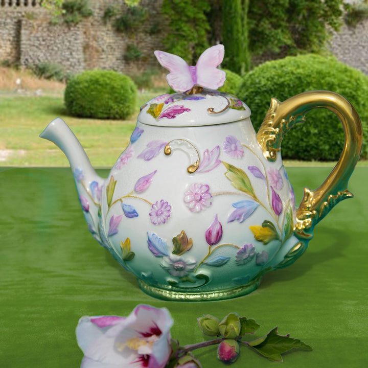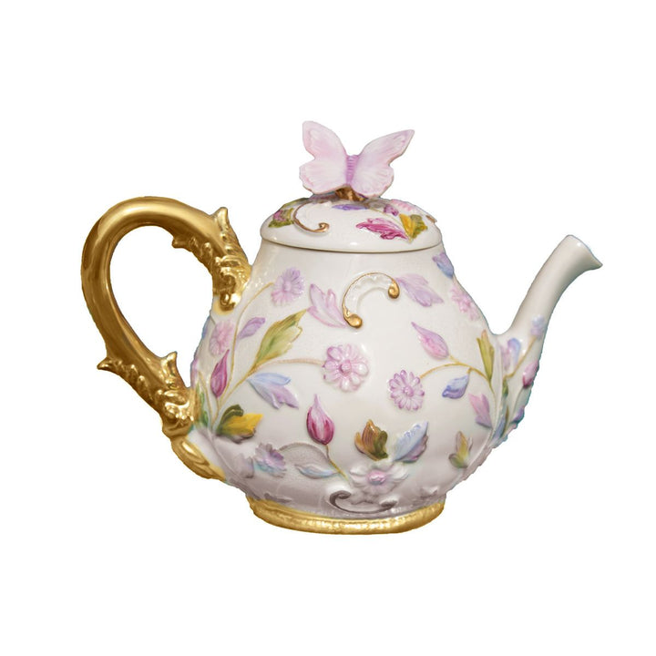 Serve tea from this beautifully Italian crafted teapot made from the finest porcelain, adorned with a raised textured botanical motif inspired by the exclusive and fashionable resort of Taormina, on the east coast of Sicily. This teapot has been luxuriously handmade in Italy and hand painted with multi-hued color accents and 24ct gold detailing. It will add a touch of luxury to your afternoon tea. Matching accessories available separately.