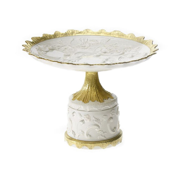 Serve treats with an eye-catching design with this Taormina cake stand from Villari adorned with a raised textured botanical motif inspired by the exclusive and fashionable resort of Taormina, on the east coast of Sicily. This cake stand has been luxuriously handmade in Italy and hand painted with 24 ct gold details. It is perfect for serving afternoon tea. Filled with treats to impress your guests, it makes a decadent piece for completing your table.