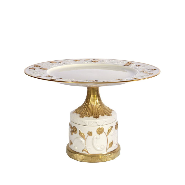 Taormina White & Gold Medium Cake Stand