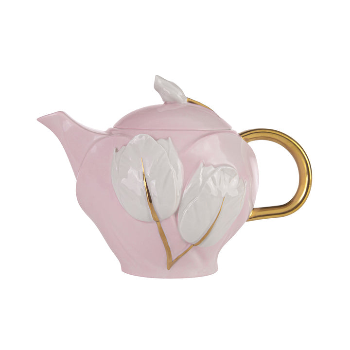 Host a dreamy afternoon tea with this Tulip tea pot. Crafted from fine porcelain, this teapot is adorned with delicate tulips flowers,With the TULIP collection, Villari brings spring right in to your home. The entire collection is Art Deco inspired and characterized by a refined Tulip in relief, the flower that most of all signifies the arrival of the good season. Hand painted with 24ct gold details, this teapot will add an air of sophistication and elegance to any setting. Complete the look by pairing this tea pot with complementing tableware from Villari’s Tulip collection.