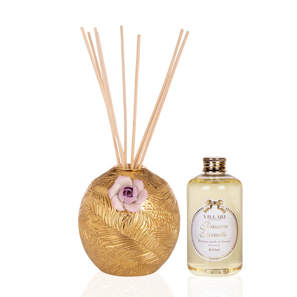 Enhance your home with the stunning Passion Eternelle aroma of this Acapulco Peony home fragrance inspired by Cycas, plant native to Asia-Pacific, East Africa and Madagascar. The home fragrance has been made using the highest quality oils. The alcohol-free formulation is designed to maximize the long-lasting effect of the scent combining notes of Patchouli, Amber and Vanilla. A fusion of Villari’s signature Italian porcelain and French best fragrances, the porcelain vessel has been hand-crafted and decorated in Italy and the fragrance exclusively created in Grasse, France, the home of luxury perfume. Packaged in a luxurious gift box, this home fragrance makes a great gift idea for any occasion.