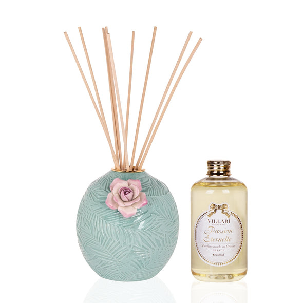 Enhance your home with the stunning Passion Eternelle aroma of this Acapulco Rose home fragrance inspired by Cycas, plant native to Asia-Pacific, East Africa and Madagascar. The home fragrance has been made using the highest quality oils. The alcohol-free formulation is designed to maximize the long-lasting effect of the scent combining notes of Patchouli, Amber and Vanilla. A fusion of Villari’s signature Italian porcelain and French best fragrances, the porcelain vessel has been hand-crafted and decorated in Italy and the fragrance exclusively created in Grasse, France, the home of luxury perfume. Packaged in a luxurious gift box, this home fragrance makes a great gift idea for any occasion.
