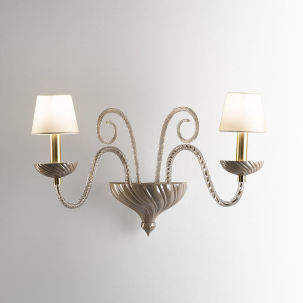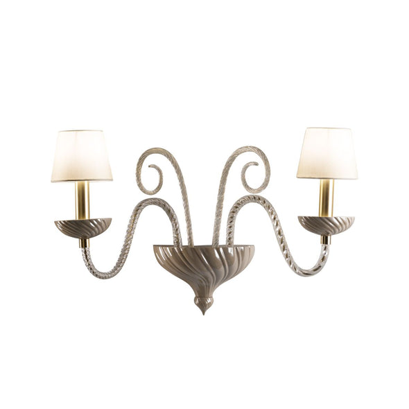 Give your home a glamourous touch with this Alba Veneziana wall light. Perfectly fitting a modern or classic décor, it features a central structure handcrafted of crystal and porcelain with a pearlescent caramel panelled detailing and each crystal embellished arm capped with a Shantung silk shade. Team with matching Alba Veneziana wall lighting to complement the look.