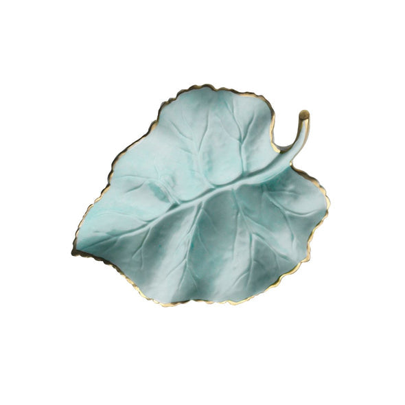 Bring an element of nature into your home with this intricately designed fig leaf. Skilfully crafted from porcelain and painted, along with 24 ct gold detail, this acid green piece will add charm to any décor. Fabulous for serving nuts, chocolate, dates and treats, this leaf is certain to wow guests especially if you pair with other leaves available in different colors, sizes and shapes to coordinate the look.