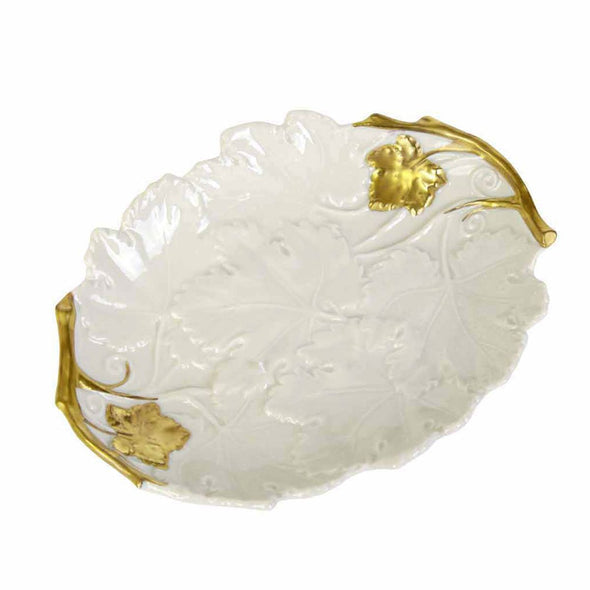 Upgrade your table display with this Villari trinket dish. Skilfully crafted from porcelain, this piece features a raised relief leaf motif and has been delicately hand painted with 24 ct gold details. It's fabulous for serving nuts, chocolate, dates and treats and it will certainely wow your guests especially if you pair with other leaves available from the Autumn Collection to create a striking focal point.