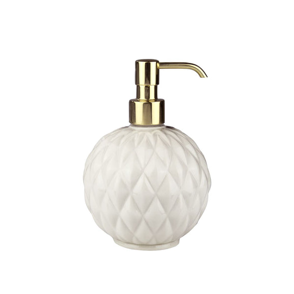 Add finesse to your bathroom with this Black Tie soap dispenser. Crafted by skilled artisans in Italy from porcelain, the gleaming surface features an elegantly textured high-relief pattern and hand finished in a crisp white sheen. This collection will add a timeless chic to your bathroom space.