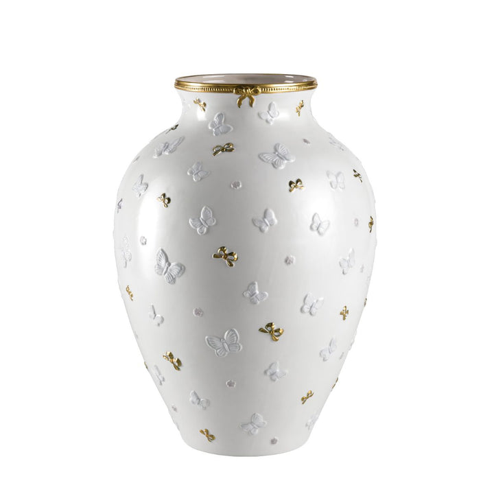 Inspired by the poetic dance of butterflies in spring during the peach blossom season, Villari's Blooming Butterfly collection creates a dreamy setting in any home. Exquisitely handcrafted in Italy from delicate porcelain, this vase has been adorned with a 24 ct gold details and has a height of 40 cm. Fill it with your favorite blooms or leave empty, either way it’s sure to make a statement wherever you place it.