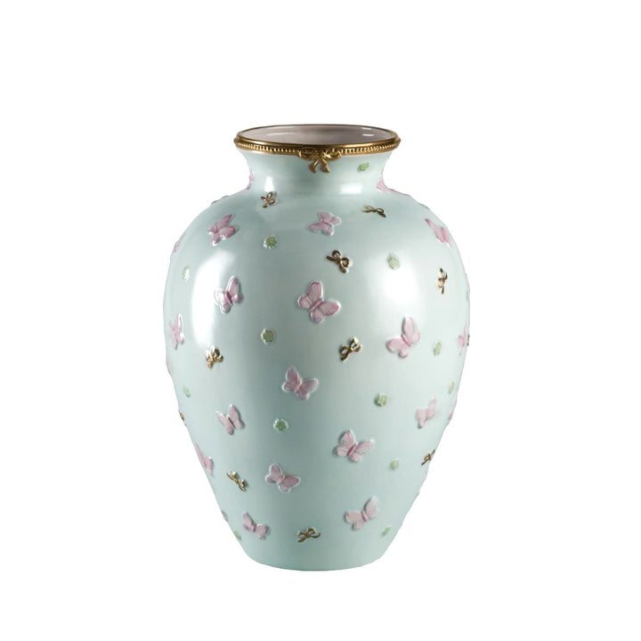 Inspired by the poetic dance of butterflies in spring during the peach blossom season, Villari's Blooming Butterfly collection creates a dreamy setting in any home. Exquisitely handcrafted in Italy from delicate porcelain, this vase has been hand painted in a delicate pastel hue and adorned with a 24 ct gold details. Fill it with your favorite blooms or leave empty, either way it’s sure to make a statement wherever you place it.