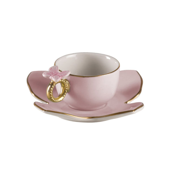 Butterfly Pastel Pink Coffee Cup & Saucer