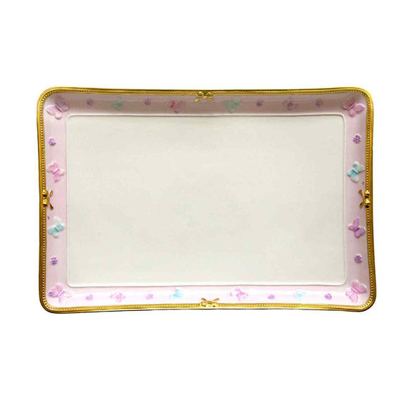 Serve treats with an eye-catching design with this Butterfly rectangular tray from Villari, inspired by the poetic dance of butterflies in spring. This tray has been luxuriously handmade in Italy and hand painted in a pretty pastel hue, with 24ct gold detailing. Perfect for creating an elegant, sophisticated afternoon tea or dinner party, this tray is a charming addition to any home.