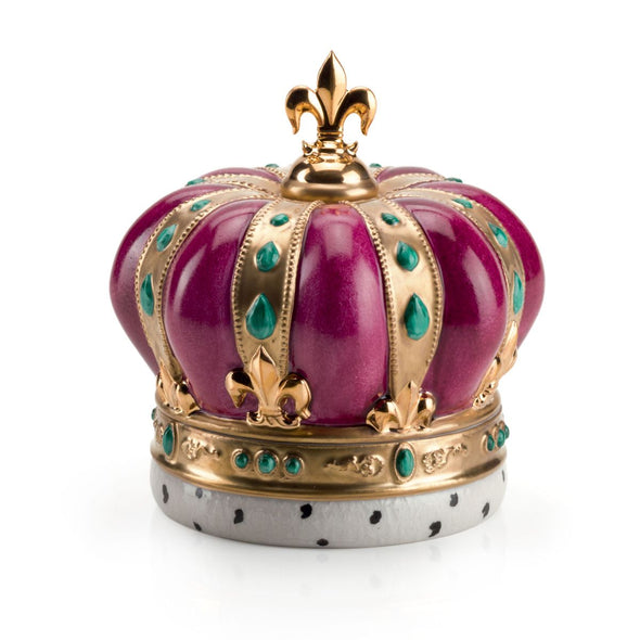 Add eye-catching style to any space with this Royal crown scented candle. Made from fine porcelain, this crown is hand-painted with 24ct gold details which is a striking addition for any room. It is a bold statement for your interior and creates a dramatic look and it is also is a great gift idea for any occasion. The Amalfi fragrance releases a exquisite scents of Lemon and Jasmin. The fragrance and the wax are made in France with 100% pure Vegetable Wax for about 80 hour burning time. Once empty, the porcelain container can be used as a sugar pot, sweet box, jewellery box...