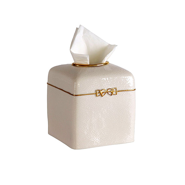 Inspired by the grandeur of equestrian style comes the Dressage collection. Crafted from precious porcelain, it features a high relief stirrup motif, contrasting with the leather patterned background. A spectacular way to introduce equestrian style to any interior. In a classic white finish with 24 ct gold details, this charming tissue box will effortlessly disguise unsightly tissue boxes and instantly add an elegance to your space.