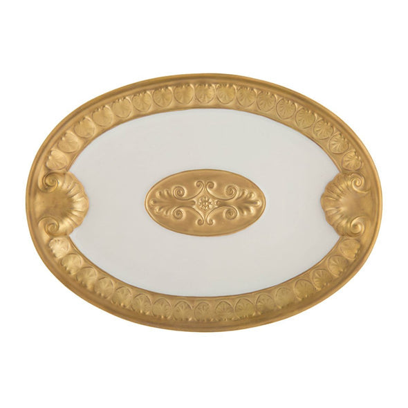 Add an ornate flair to any table with this Baroque Centrepiece hand painted with 24 ct gold from Villari. Crafted from the finest porcelain, the Centrepiece has a classic Baroque motif and is adorned with four white Cherubs creating an unique atmosphere wherever it is placed. It makes a fabulous addition to any home.