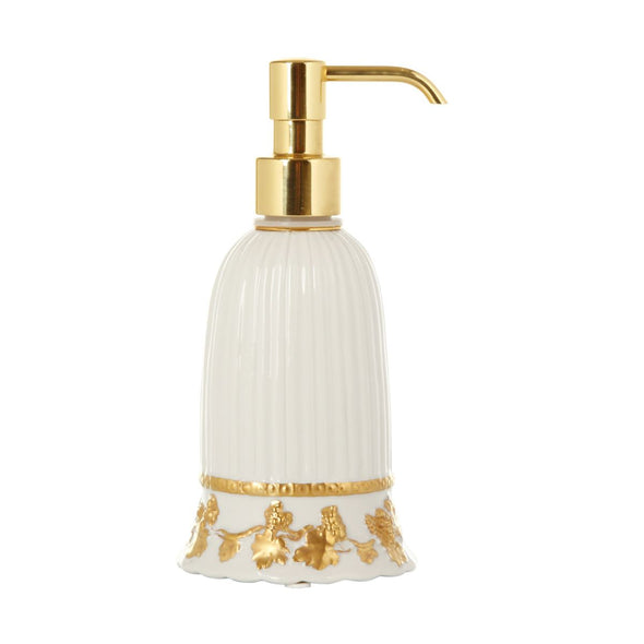 Make a style statement in your bathroom space with the Peacock soap dispenser. Crafted from fine porcelain in Italy, with a peacock high relief pattern and hand painted in glistening 24 ct gold, this soap dispenser screams Luxe. Team with matching accessories to create a dazzling effect.