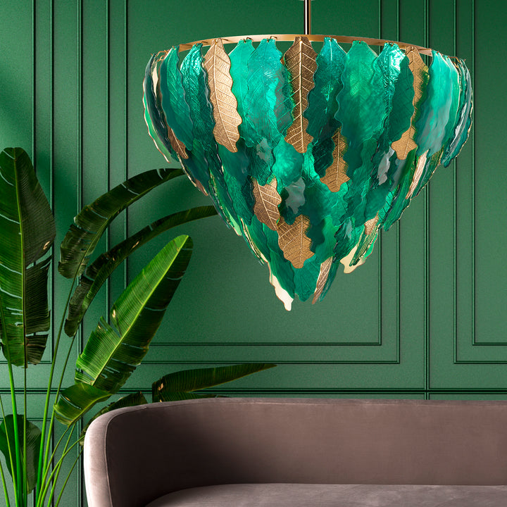 Kelly Chandelier - 12 Lights - Peacock Green & Gold