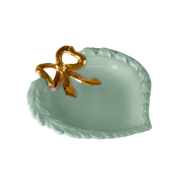 This pretty and elegant heart shaped trinket dish makes a charming statement, Hand crafted from porcelain in Italy, featuring a subtle embossed pattern, hand painted in a pastel hue and 24 ct gold painted bow, it makes a charming gift for a baby shower or wedding favour. A personalisation service is available to make it extra special.