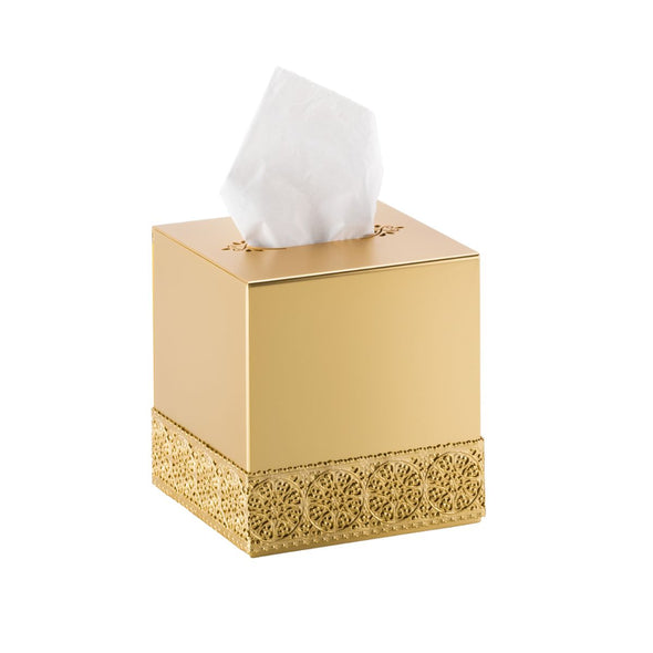 Add a decorative touch to your interior with the Marbella square tissue box. Crafted from polished brass plated with 24 ct gold by skilled artisans in Italy and adorned with a pattern inspired by its Oriental influences, the Marbella square tissue box, will instantly smarten up boring tissue boxes and make a fantastic addition to your barware or bathroom. Team with matching accessories to complete the look.