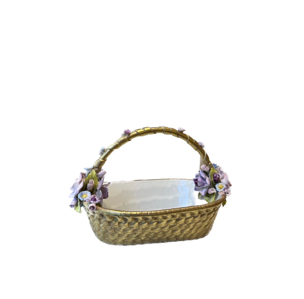 Oval Basket With Flowers - Antique Gold Coloured Flowers