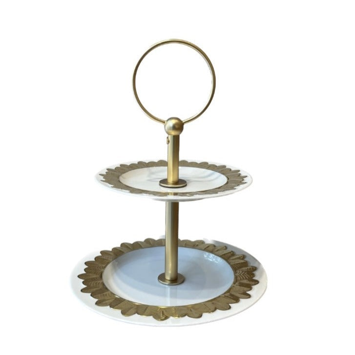 Peacock 2 Tier Stand - White Antique Gold