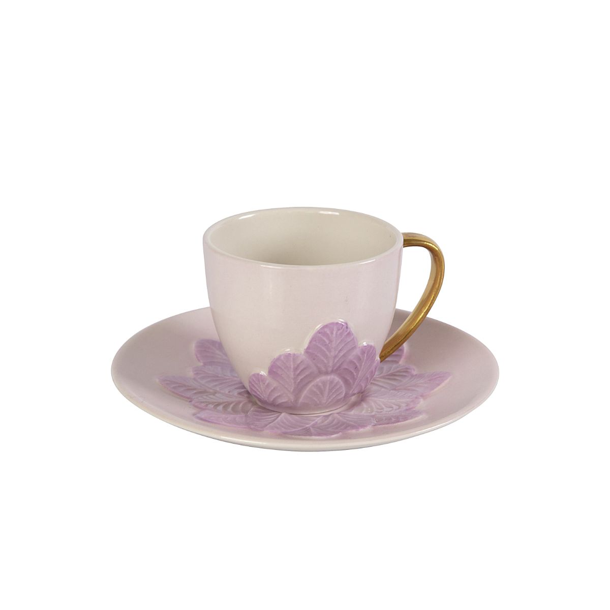 Peacock Lilac & Gold Coffee Cup & Saucer