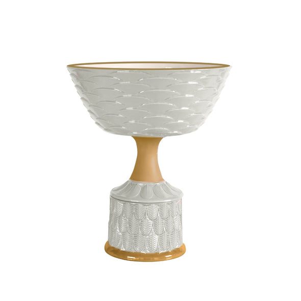 Bring some majesty to your table top with this Peacock fruit bowl from Villari. The grace of the majestic peacock, inspired by shapes from twenties deco style, re-interpreted and added with an eclectic twist, the result is a beautiful peacock feather like high relief pattern, creating a luxurious ambience. Crafted from fine porcelain in Italy and finished with a stunning 24ct gold detailing, this fruit bowl will add a sumptuous touch to your table and can be paired with complementing tableware to complete the look.