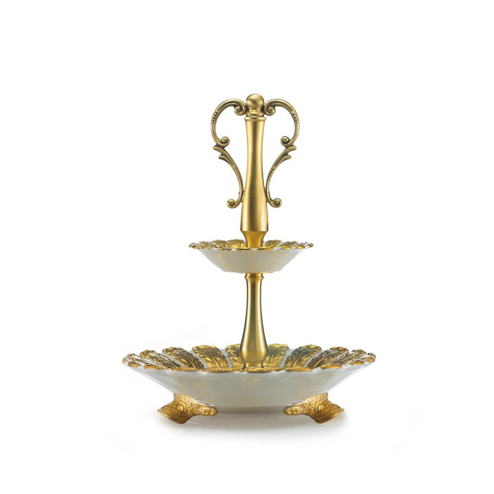 Queen Elizabeth White & Gold 2 Tier Cake Stand