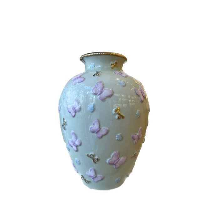 Inspired by the poetic dance of butterflies in spring during the peach blossom season, Villari's Blooming Butterfly collection creates a dreamy setting in any home. Exquisitely handcrafted in Italy from delicate porcelain, this vase has been hand painted in a delicate pastel hue and adorned with a 24 ct gold details. Fill it with your favorite blooms or leave empty, either way it’s sure to make a statement wherever you place it.