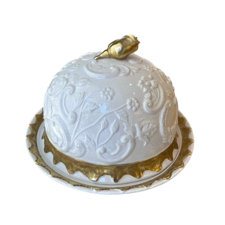 Taormina Cloche With Dish - White Antique Gold Profiles