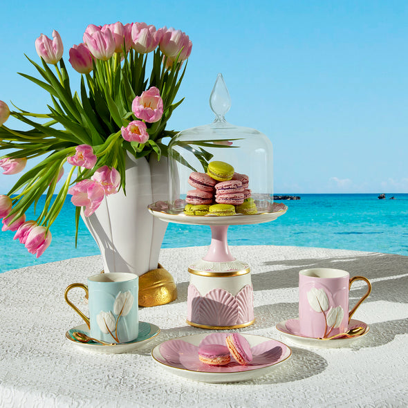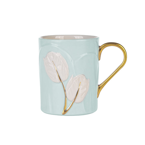 Host a dreamy afternoon tea with this Tulip Mug. Crafted from fine porcelain, this Mug is adorned with delicate tulips flowers,With the TULIP collection, Villari brings spring right in to your home. The entire collection is Art Deco inspired and characterized by a refined Tulip in relief, the flower that most of all signifies the arrival of the good season. Hand painted with 24ct gold details, this Mug will add an air of sophistication and elegance to any setting. Complete the look by pairing this Mug with complementing tableware from Villari’s Tulip collection.