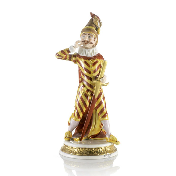 Add a Venetian flair to your home. The Venice Carnival is the most famous and sophisticated carnival in the world with colorful costumes and masks. Villari has carefully captured in porcelain the most important characters of the the Italian commedia dell'arte such as Harlequin, Colombina, Pantalone, Pierrot, Scaramouche… This Isabella mask reflects the splendor of the Venice Carnival. Isabella is certainly the most known character among all female Lovers. Elegantly dressed, Isabella has been faithfully shaped and decorated in Italy by skilled master craftsmen. Presented in a yellow Villari gift box this figurine will make a timeless gift idea and will look stunning in a display cabinet paired with other figurines of the commedia dell'arte to complete the collection.